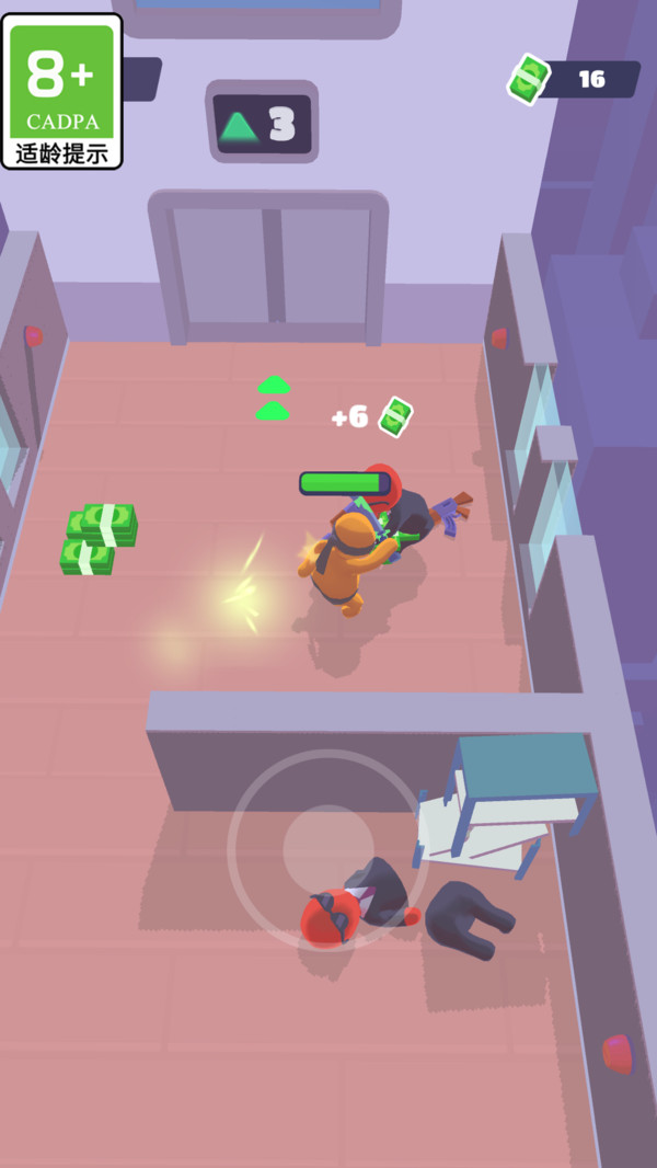 1点击“开始”按钮后,你将正式进入任务关卡。此时,界面上会显示出目标敌人、奖励金额以及任务进度,任务从你进入大楼那一刻起就开始推进。