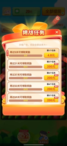 3.丰富的任务奖励:每天除了闯关外,还有大量的任务和等级奖励,这些都能让你获得红包奖励。