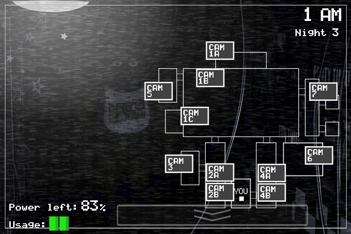 5、从第三夜开始,背后的玩具熊每小时需要用手电照射两次,到五点时则需照射四次。