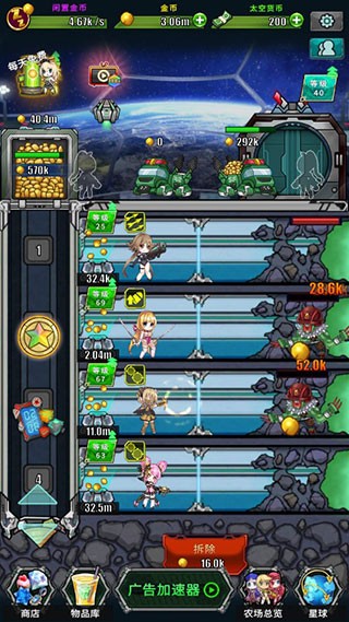 你能够对农场与太空飞船进行升级,进而解锁更多星球,最终征服整个宇宙。