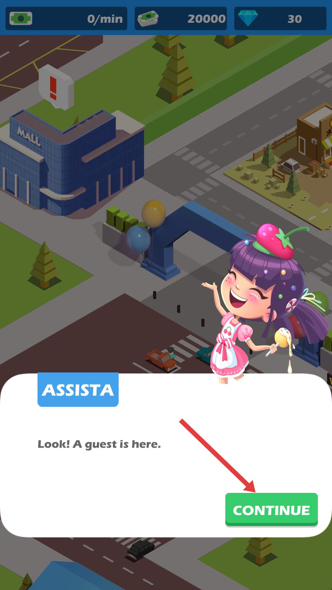 1. 轻点“CONTINUE”,确认客人已至,开启互动环节。随后依照指引,处理与客人相关的各项事务,推动游戏流程有序进行。