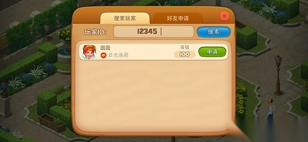 搜索对方的ID,如果你知道朋友的ID就可以在游戏搜索,点击申请立即发送添加信息给对方