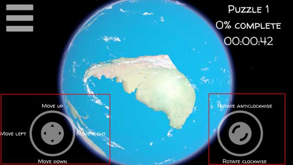 3、借助滑动屏幕的操作,实现地球的旋转,从而能俯瞰地球的各个区域。