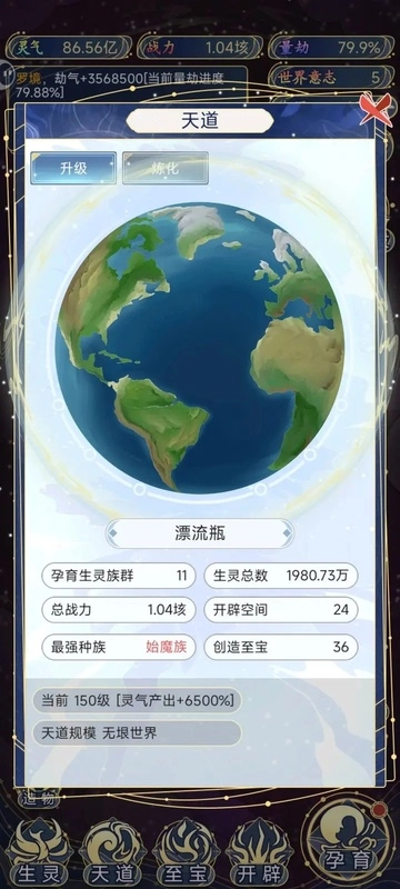 6.世界意志:优先选择法则中增加灵气收入的选项。或优先选择晋升世界。(注:不要过早的进行世界升阶,以免战力不够,无法生存。)