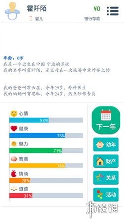 这是一款轻度模拟人生的休闲游戏,涵盖了从婴儿到死亡的全部人生过程,在游戏中,你的选择将决定你的未来走向。