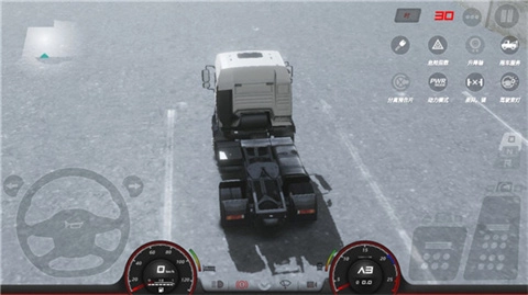 1、点击右上角菜单,点击左侧钥匙图标启动卡车,即可开始按踏板操作,坐标为方向盘,右侧为刹车和油门,油门上方为前进和倒挡。