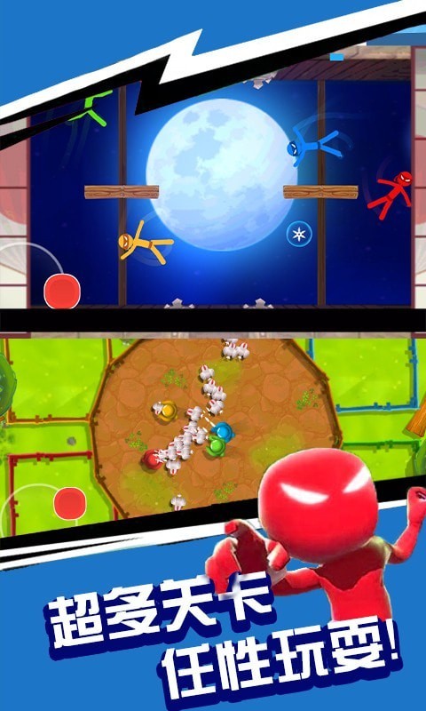 游戏者需独自应对三个火柴人的挑战。此处拥有十几种别具趣味的玩法。
