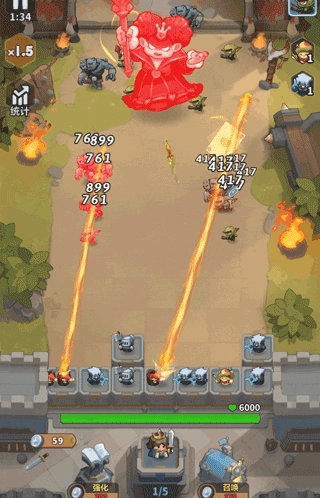 普通的小怪,它们尤为擅长对城墙发起攻击。这些小怪常常成群结队地现身,特别是在第五关里,其数量庞大,这对国王的群体伤害输出能力是个不小的考验。