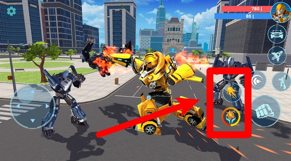 2.点击右侧武器按键可发起攻击,选择不同武器可造成不同效果。