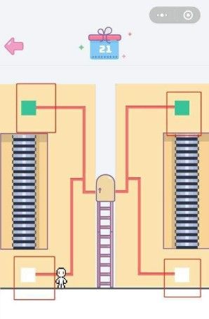 点击“出门”按钮,接着调节手机角度,让小人掉落至出口处。