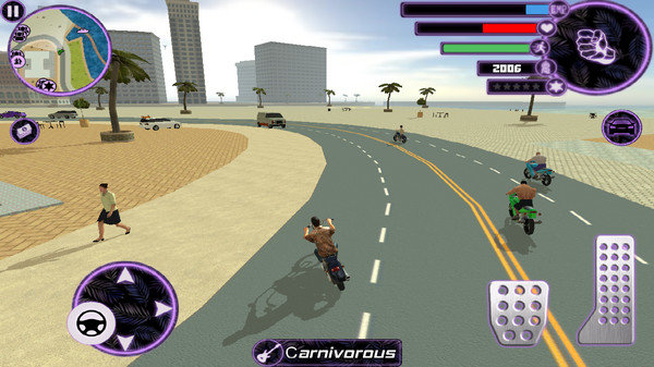 2、迈阿密:在《自由之城2》中,玩家能够抢劫、偷窃他人车辆,并且可以自由驾驶前往任何地方。