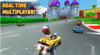 3、实时多人竞技:支持好友组队或随机匹配全球玩家,在道具赛竞速赛等模式中对抗,利用香蕉皮导弹等道具干扰对手争夺冠军。