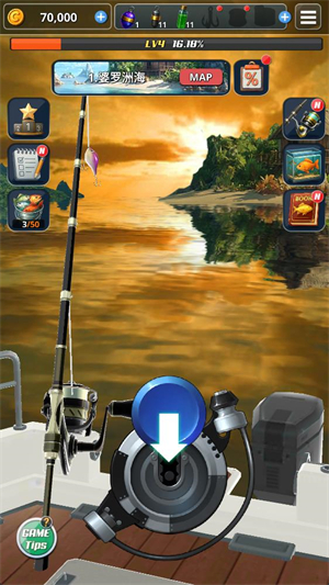 6、gogo小编橘子亲测自诩按动屏幕上的按钮就能够给鱼施加伤害,让鱼无法逃脱,你就可以轻松的把鱼给钓上来了,十分简单。