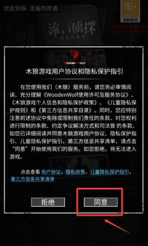 1. 点击“同意”按钮,接受协议后进入游戏。