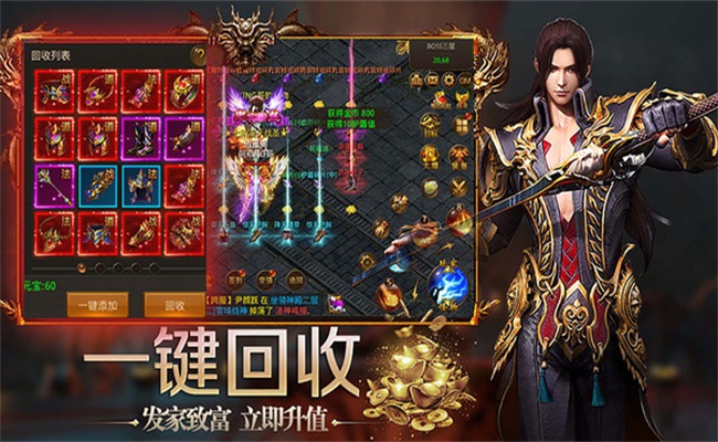 3、屠龙宝刀,黄金战甲,炫酷坐骑免费赠送,多样福利拿到手软。