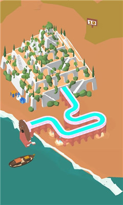 该游戏采用的是卡通画风,玩家需要根据不同的方式将河水引到一条条河中,