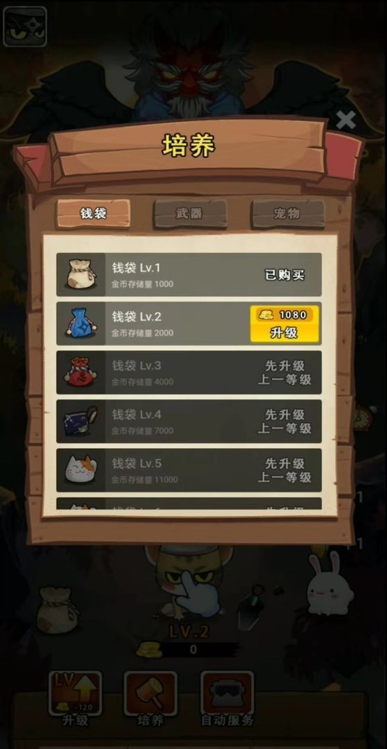1.选择不同的食材来提升猫咪的等级,轻松养成
