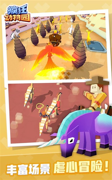 2.创建自己的动物园,从驯服,繁殖到运营,吸引游客前来赚取金币。