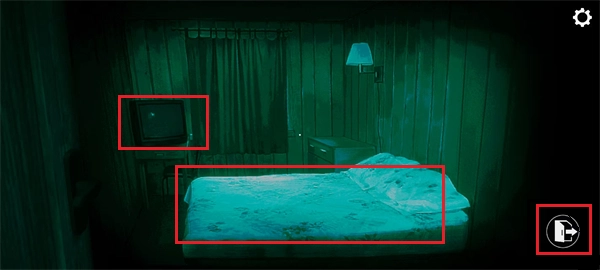 3、接着返回卧室,卧室里的电视和床都能进行交互。点击右下角即可退出卧室,点击床则可进入睡觉环节,推动剧情发展。