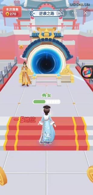 这是一款在抖音上热度颇高的跑酷闯关游戏。在游戏里,玩家要操控美女持续收集道具,让其从丫鬟一步步蜕变成为王妃,最终成功通关。