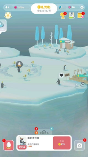 1. 企鹅岛栖息地的数量、等级以及进化情况,决定了游戏中至关重要的一点——产出效率,游戏里其他所有内容都是围绕它展开并为之服务的。