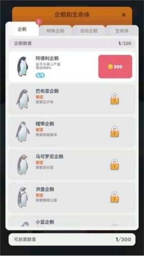 3、需要说明的是,企鹅需用金币购买,而各类功能强大且蠢萌的生命体,则要通过抽卡来解锁。