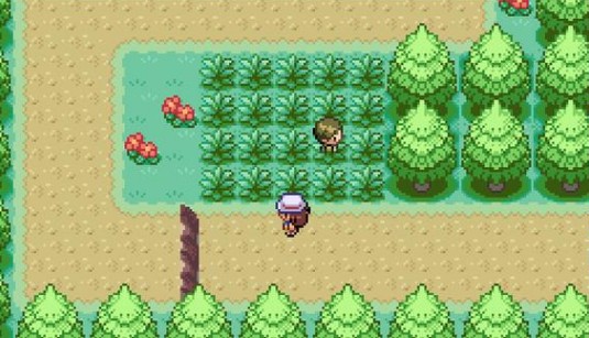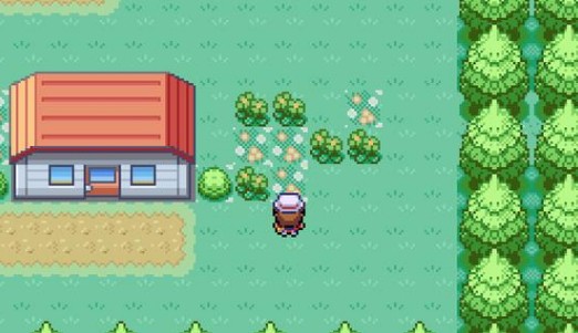 7、在华蓝市右侧往下走,能看到一个培育屋。继续往下走,进门会受阻无法通过,出门后从左边进去,就到宝可梦乡了。