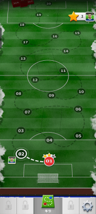 这款游戏的操作方式颇为简易,玩家只需滑动屏幕,就能实现传球或射门的操作。在游戏过程中,玩家要赶在屏幕左上方生命槽耗尽之前,把球成功踢进网内。游戏给予玩家较多尝试机会,然而,若想以三星成绩通关关卡,难度还是比较大的。