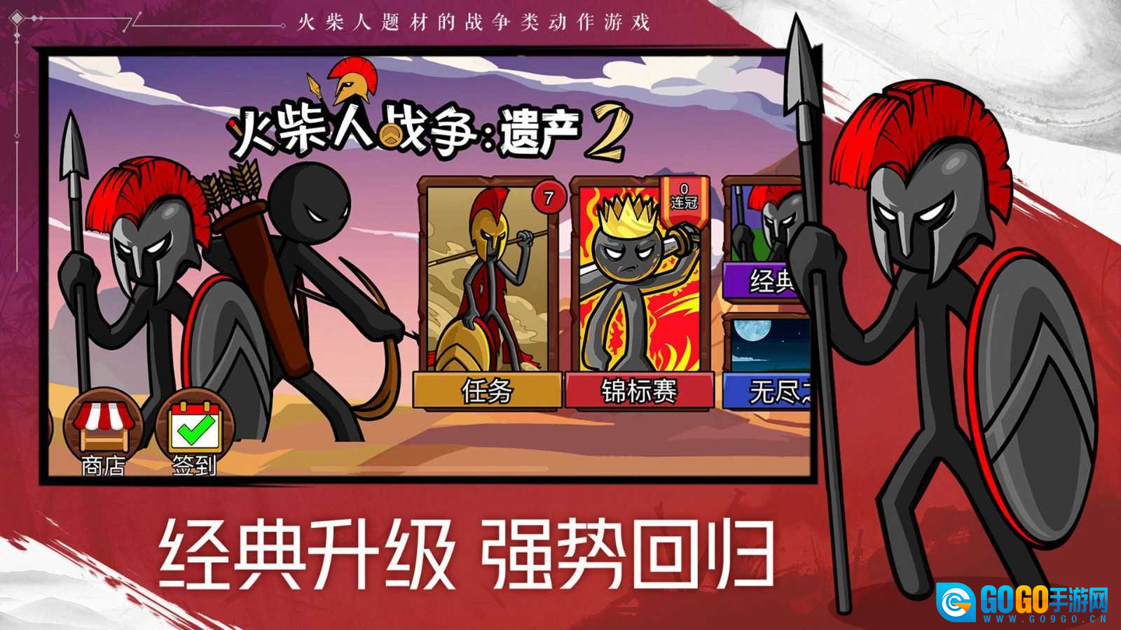 《火柴人战争遗产2》是一款备受广大玩家喜爱的战争题材火柴人策略对战游戏。在游戏里,你能目睹极为壮观的战争场面。同时,诸多全新关卡与冒险正静候玩家前去挑战。游戏内武器种类丰富,玩家可随意挑选武器与敌人对抗,玩法十分刺激。喜爱此类游戏的玩家,快来尽情体验吧!