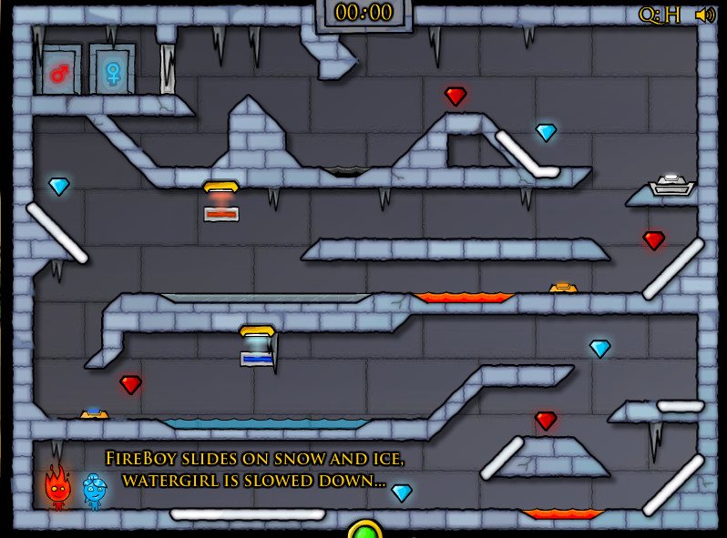 1、游戏角色需具备充足的灵活性,玩家能够操控火焰人与冰人来完成通关。在此过程中,要持续留意并应对所有的陷阱。