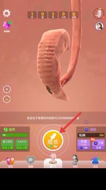 1. 开启游戏后,点击【成长】按键,耗费资源推动胎儿发育。