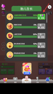 4、于【胎儿生长】界面,领取各个发育阶段的奖励,持续推动胎儿成长进程。
