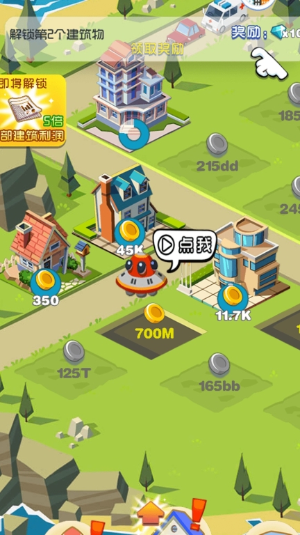 经营模拟城镇传奇是一款Q版画风的城镇经营模拟游戏。现在你将成为这座城市的市长,你需要充分发挥自己的规划能力来建造一座繁荣的城镇。拥有各种可以解锁的建筑物,升级之后获得的收益也会提升哦!但是我们的金币资源有限,需要玩家合理考虑怎样使用,才能够让收益最大化。完成更多任务,解锁更多空间,让城市变得更加繁荣吧!