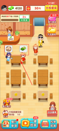 1、当进入游戏后,会不定时地有客人来到餐厅用餐。此时,我们要点击客人头像上的图标,为客人上菜。