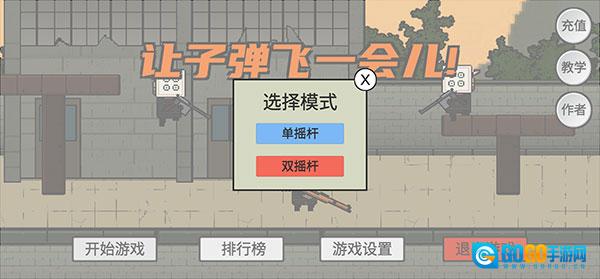 2、模式选择:单摇杆模式下,在控制角色移动的同时,也操控着枪口瞄准方向;双摇杆模式中,则是一个摇杆负责控制移动,另一个摇杆负责控制射击方向。