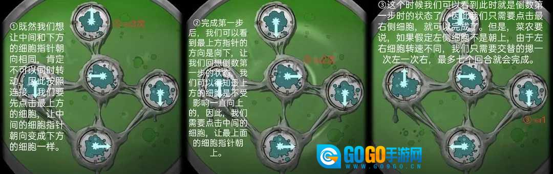 换言之,我们能够观察到中间的细胞与下方的指向一致。所以,我们首要做的便是使它们的朝向保持一致。具体攻略如下: