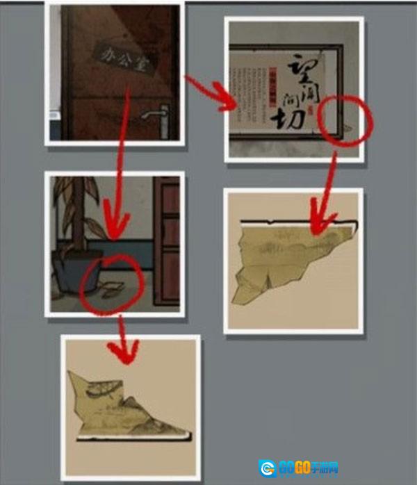 1、进入办公室后,在望闻问切牌后拾取明信片碎片4,植物处获得明信片2。