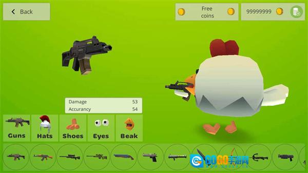 3、提供了如火箭炮、狙击枪、步枪等丰富的武器装备、以及多样的小鸡皮肤新装等都可以解锁。