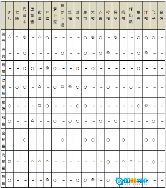 ◎:极好 ○:好 △:差 -:一般