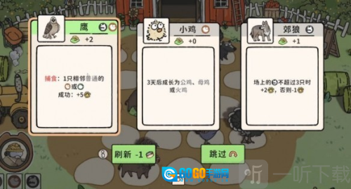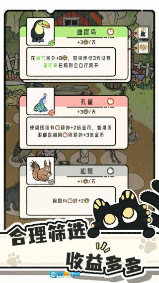 2.每日可以购买不同的小动物来放入农场,也可以使用猫罐头来刷新次数。