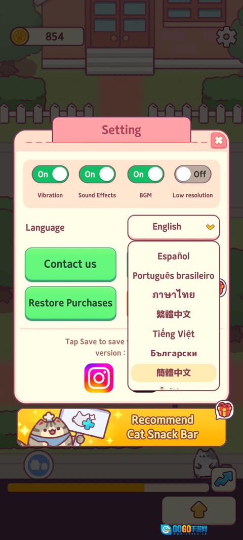 3、然后返回游戏就可以看到游戏语言设置成了。