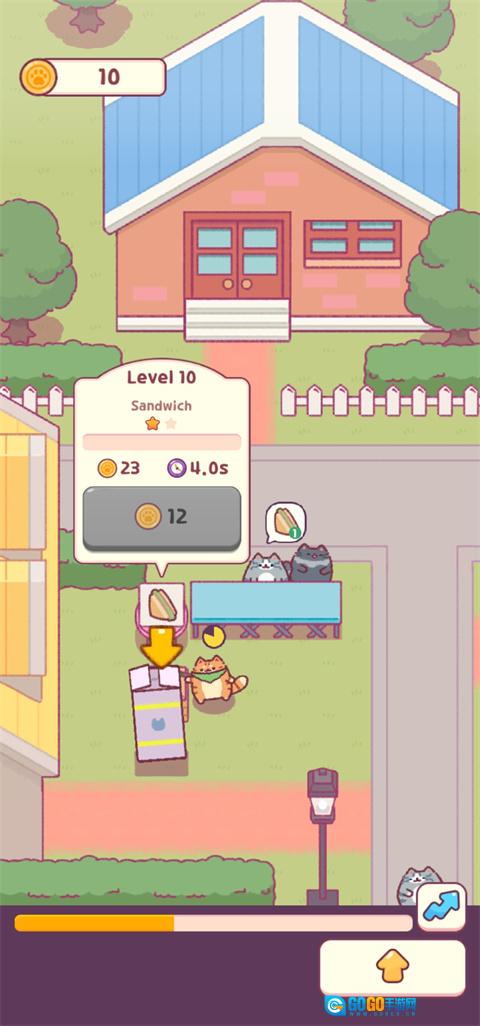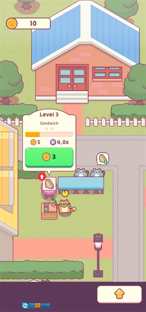 6、点击下方黄色的箭头,这里可以在收获一只猫猫,可以帮助你制作三明治;