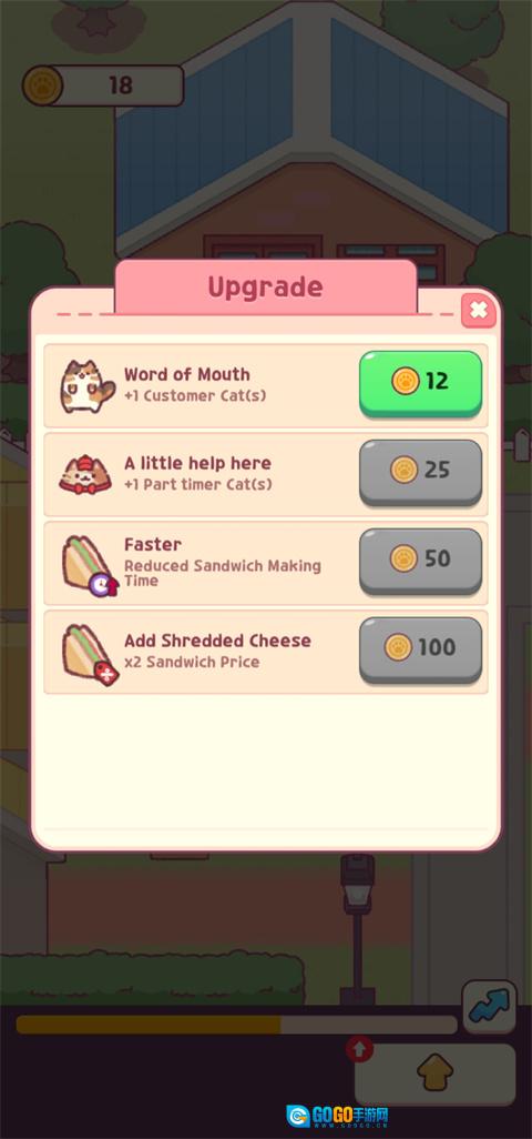 4、你也可以给三明治进行升级,这样获得的钱也更多;