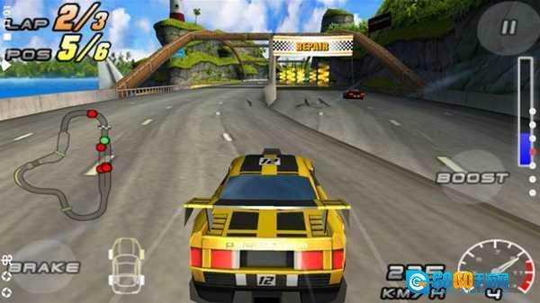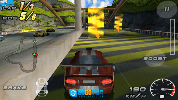 3、游戏操控方式为重力感应,较为简便,只需倾斜设备就能控制赛车转弯。