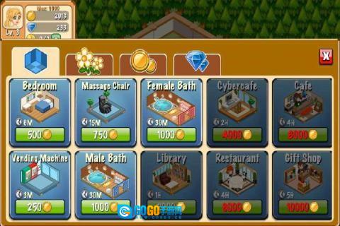 2、拥有14个独具特色的设施,并且具备多级别的升级设定。