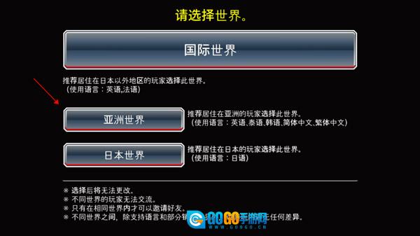 2、玩家同意隐私条款后,需先进行世界选择,此时选择亚洲世界即可。亚洲世界支持简体中文与繁体中文。
