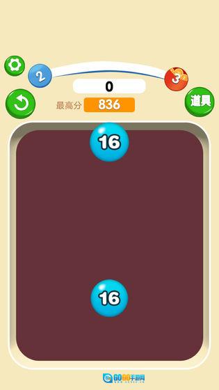 3、相邻且数字相同的弹球会合并为一个。