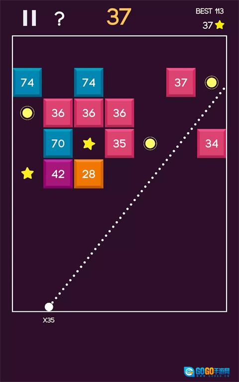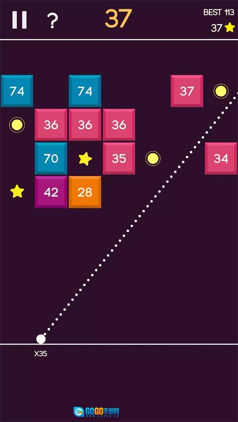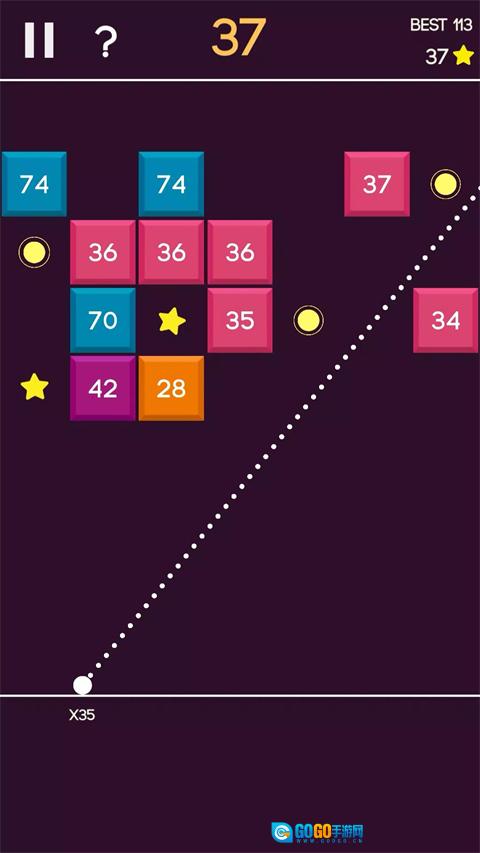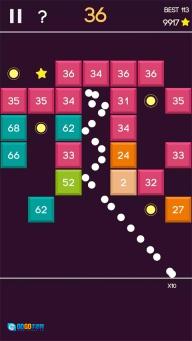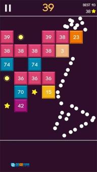 变换角度,射出你的方块球,使其通过弹击,消除关卡里的方块。