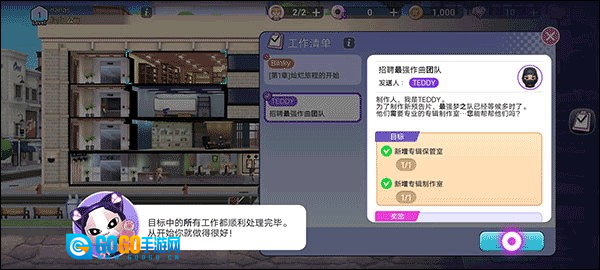 4、点击完成,便可开启下一项工作——招聘顶尖作曲团队,正式启动BLACKPINK首张专辑的相关工作。在此之前,首先要组建专辑相关部门。