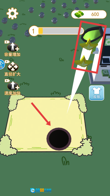 2、当黑洞吸入的宝物达到满额状态时,把黑洞移动至转换区,将吸入的所有宝物统统转换成货币。
